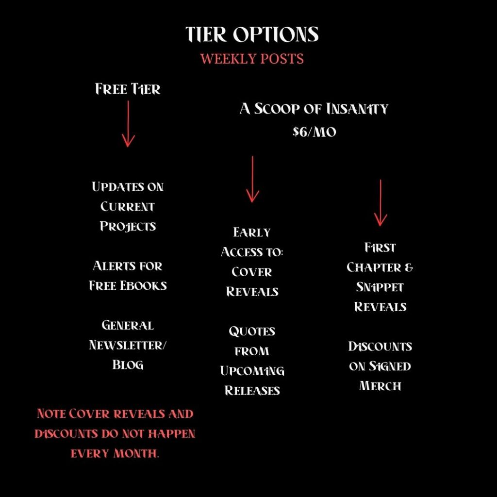 There is a paid tier to choose from (the options will pop up when you hit subscribe). Posts will drop 3-4 times a month. Please be aware that cover reveals and discounts do not happen every month.